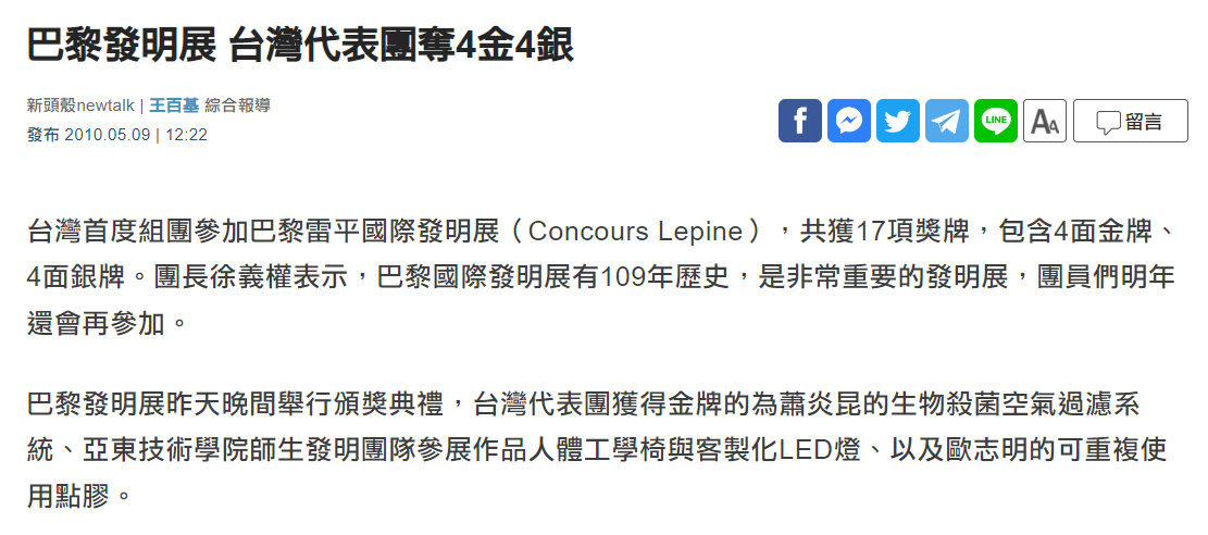 巴黎發明展 我奪17獎